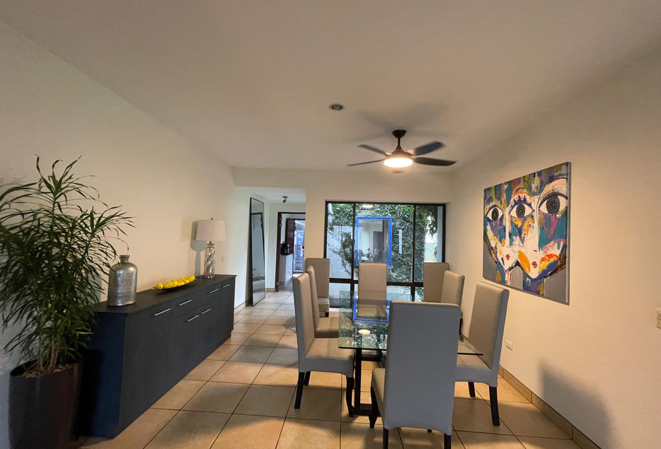 Cuenta con 3 habitaciones, 2.5 baños, cuarto de servicio con baño, sala, comedor, cocina, sala de estar, clóset de linos y un espacioso cuarto principal con walk-in closet. Disfruta de sus amplios jardines delantero y trasero, área de lavandería interna y parqueo para 2 vehículos con portón eléctrico.